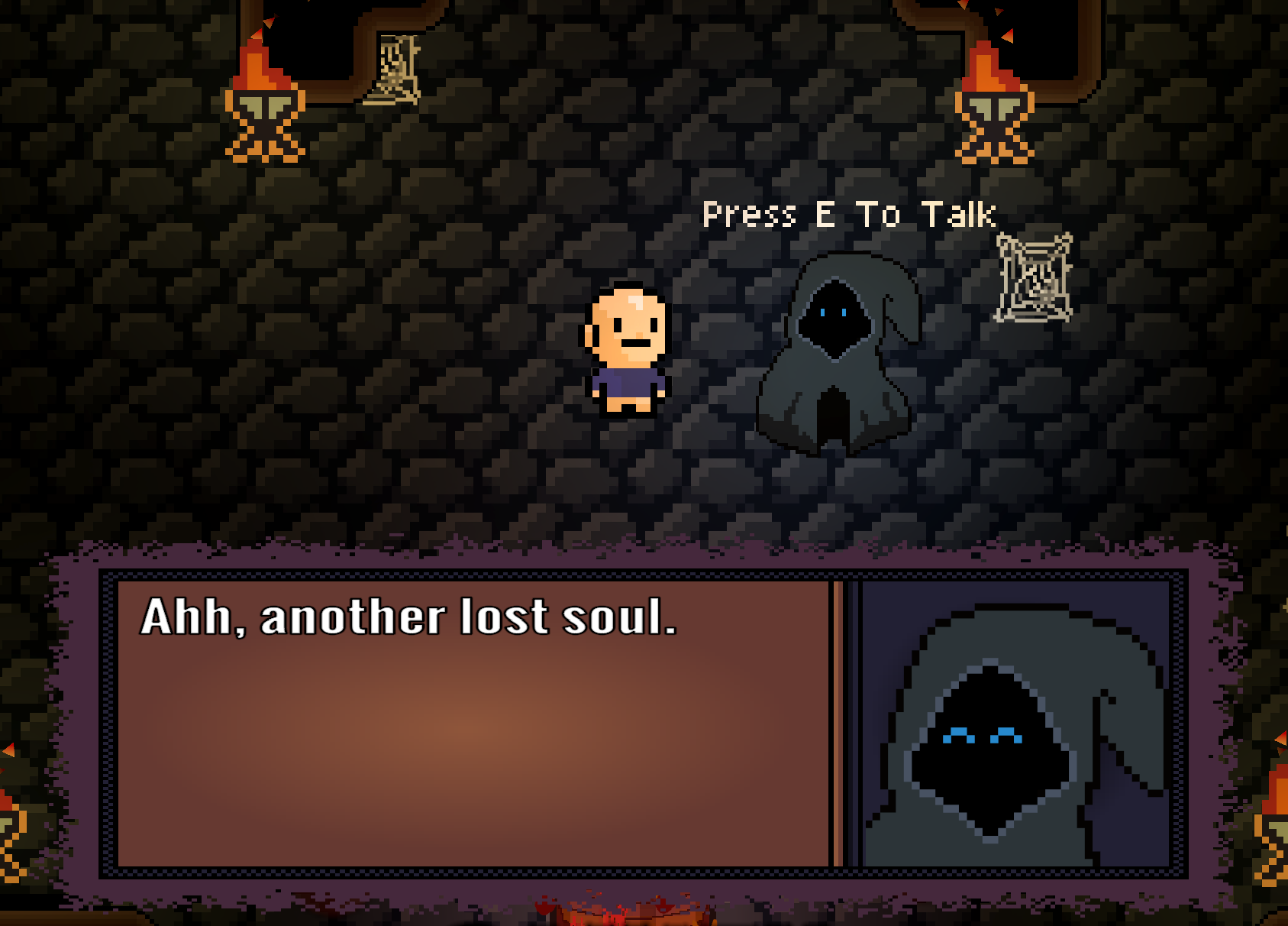 Hi Baldy welcome to Hell. Travel the different mazes and collect artifacts to escape. Be careful though there may be some creatures following you as you go. Can you and your bald head escape. Welcome to the haunt.